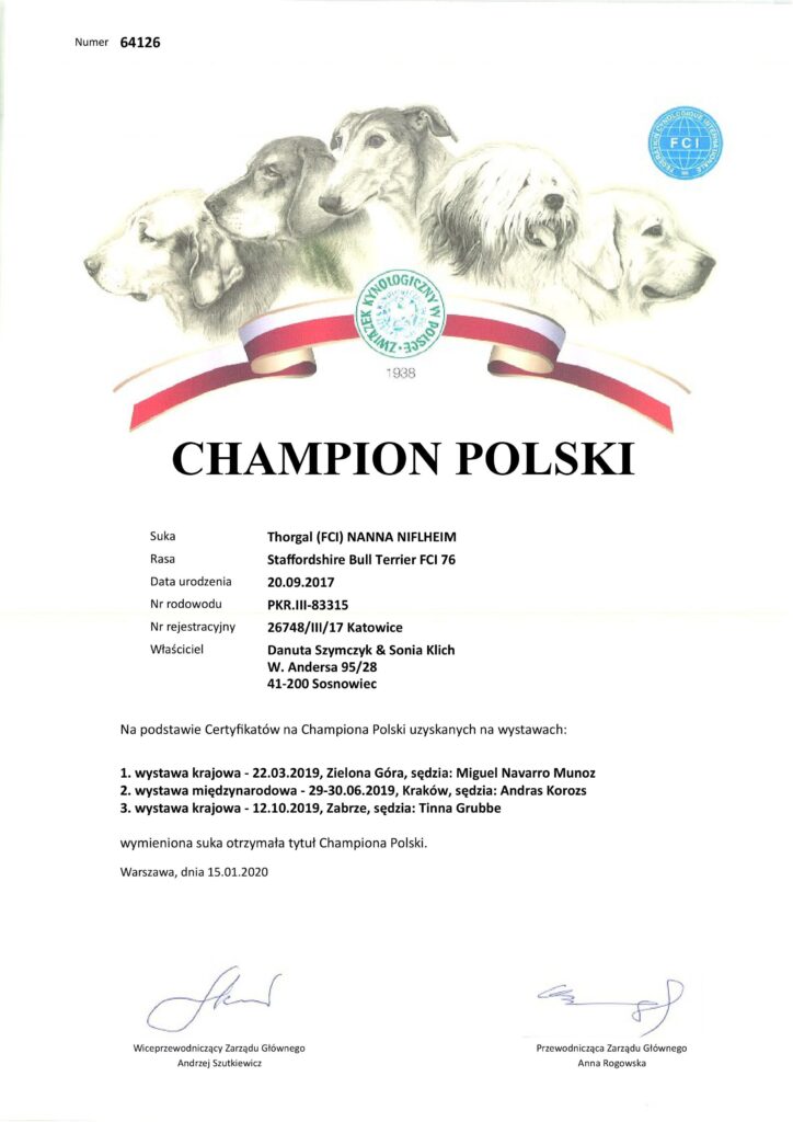Thorgal Nanna Niflheim – Czesia uzyskała tytuł Champion Polski , jesteśmy z niej bardzo dumni .